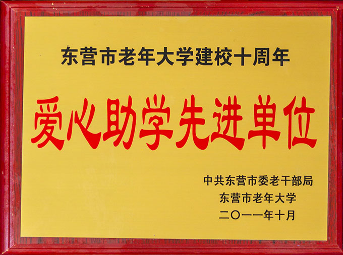 東營市老年大學(xué)建校十周年愛心助學(xué)先進單位