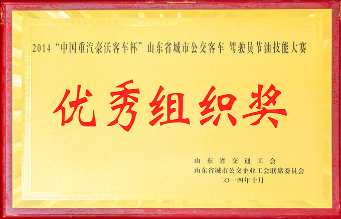 2014“中國重汽豪沃客車杯”山東省城市公交客車駕駛員節(jié)油技能大賽優(yōu)秀組織獎