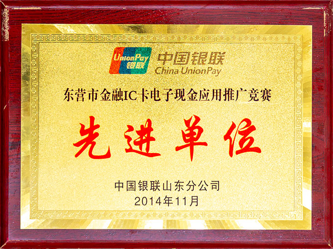 東營市金融IC卡電子現(xiàn)金應(yīng)用推廣競賽先進單位