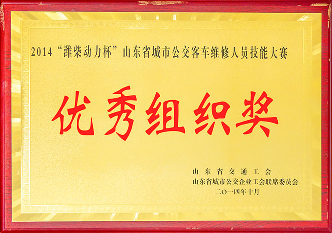 2014“濰柴動力杯”山東省城市公交客車維修人員技能大賽優(yōu)秀組織獎