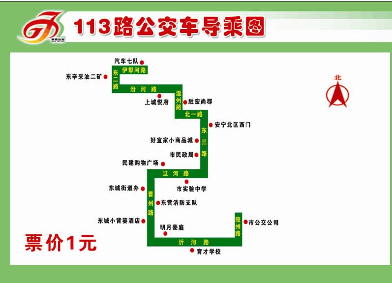 113路:該線路自汽車七隊始發(fā),經(jīng)伊犁河路(華瑞小區(qū))、東二路(東辛采油二礦、盛大商場),改經(jīng)汾河路(青盛小區(qū)、上城悅府)、溫州路(勝宏尚郡),到達(dá)北一路后,恢復(fù)原線路,線路里程、票價、班次均不變。