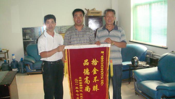 7月6日下午,市公交公司汽車七隊(duì)迎來一位老大爺,一手拿錦旗,一手提著沉甸甸的禮物,來到車隊(duì)領(lǐng)導(dǎo)辦公室,感謝拾金不昧的公交車駕駛員閔慶丁師傅。