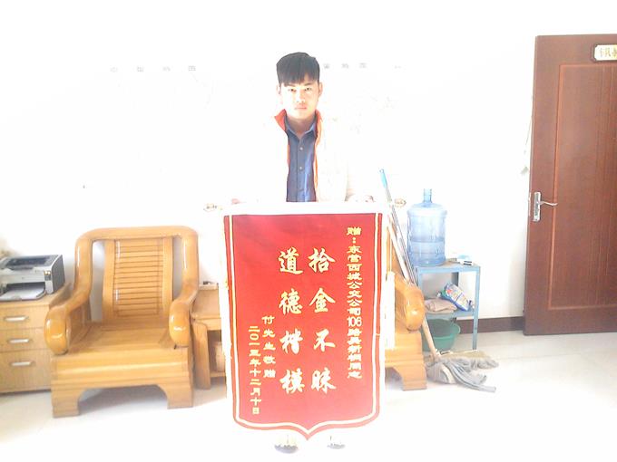 12月15日,家住南一路桐鳳小區(qū)的付玉先生拿著一面寫有“拾金不昧、道德楷?!钡腻\旗來到市公交公司汽車四隊,感謝車隊駕駛員吳新桐師傅拾金不昧的高尚品德。