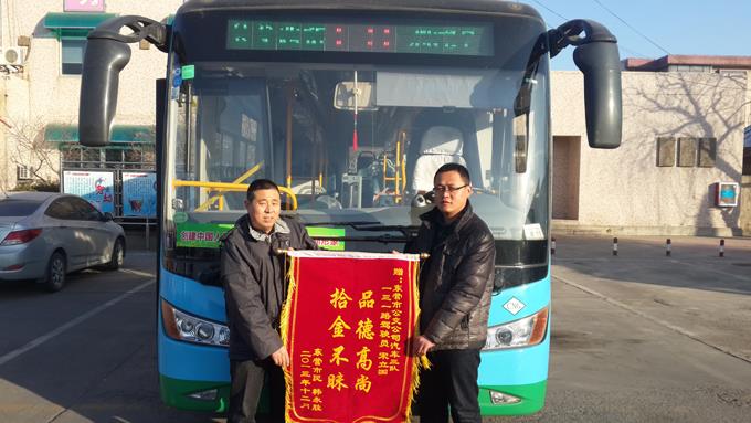 12月26日,家住東城的韓永勝先生拿著一面寫有“拾金不昧,品德高尚”的錦旗來到市公交公司汽車三隊,感謝車隊駕駛員宋立國師傅拾金不昧的高尚品德。