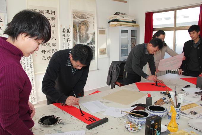 近日,市公交公司工會組織公司“書畫攝影社”開展了為2012年度“公司先進(jìn)工作者”贈(zèng)送春聯(lián)活動(dòng),號召一發(fā)出,廣大書畫攝影社成員都積極參與,書畫社社長及書畫社理事親自執(zhí)筆,成員們有的裁紙,有的研磨,有的則忙著掛晾春聯(lián),一片繁忙熱鬧的迎新春景象,一幅幅泛著墨香的春聯(lián),讓過年的味道更加濃郁。春聯(lián)已于2月5日陸續(xù)送到各位先進(jìn)手中。
