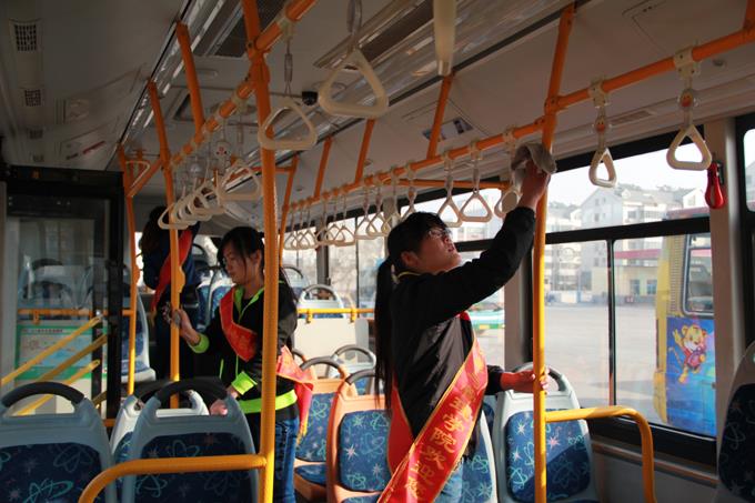 2013年3月9日上午,市公交公司汽車一隊聯(lián)合東營市職業(yè)學院會計學院的大學生開展了義務活動。參加義務活動的38人分為兩個活動小組,一組乘坐公交車上路為老、弱、病、殘、孕等特需乘客服務,以及在站點疏導乘客;另一組在汽車一隊駐地幫助擦洗公交車,清掃車廂衛(wèi)生。大家工作起來井然有序,有條不紊,都認真投入其中,尤其活躍在車廂為乘客服務的志愿者們,更是得到了乘客的一致好評,成為公交車上一道亮麗的風景。