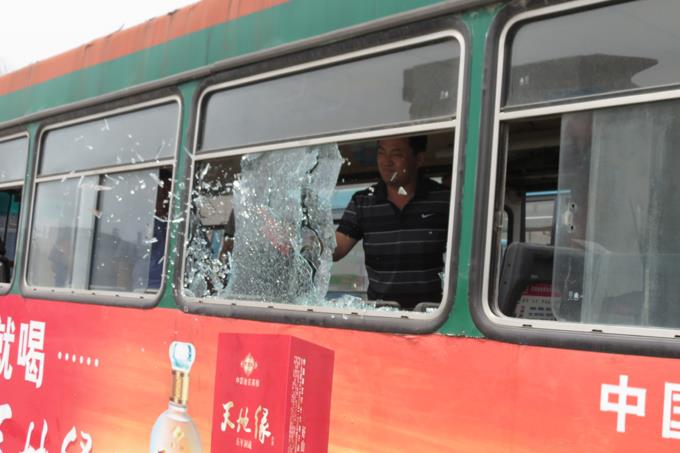 演練中,一輛滿載乘客的公交車驚現(xiàn)火情,車輛冒出大量濃煙,已經(jīng)無法繼續(xù)行駛,車上司乘人員迅速啟動(dòng)應(yīng)急預(yù)案,開啟車門并用應(yīng)急錘敲碎車窗玻璃組織引導(dǎo)車廂內(nèi)的乘客緊急疏散,全體乘客用手捂住口鼻,緊張而有序地疏散到安全地帶。