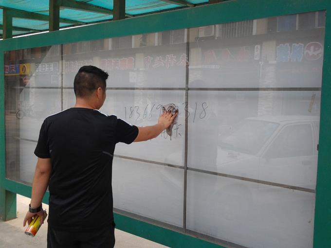 市公交公司汽車二隊(duì)定期清理公交站點(diǎn)小廣告