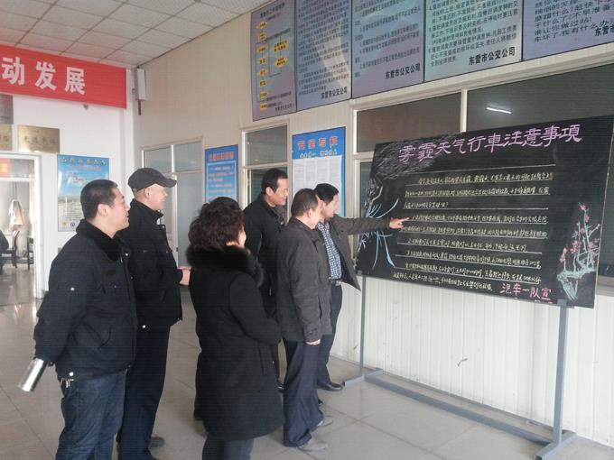 本次教育,圍繞霧霾天氣誘發(fā)交通事故的因素、預(yù)防和減少交通事故的應(yīng)對措施、行車中應(yīng)該注意的事項(xiàng)以及車輛維護(hù)保養(yǎng)常識等有關(guān)內(nèi)容展開。安全教育在市公交公司汽車一隊(duì)調(diào)度室分批進(jìn)行,并制作了防霧霾宣傳板報。