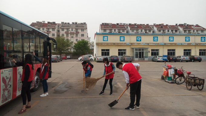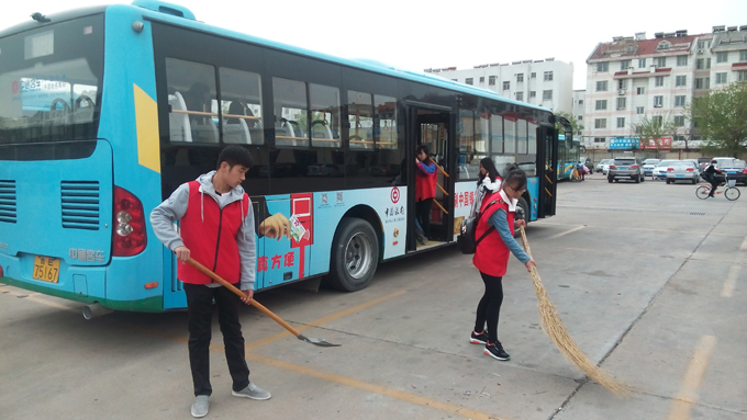 來自東營職業(yè)學(xué)院青年志愿者協(xié)會的學(xué)生和市公交公司汽車一隊職工共計30余人,分成兩個小組,一組打掃停車場衛(wèi)生,撿拾地上果皮紙屑,另外一組幫助駕駛員擦拭車身,清掃車廂衛(wèi)生。大家干得熱火朝天,不到兩個小時,公交車和停車場被大家打掃得干干凈凈。
