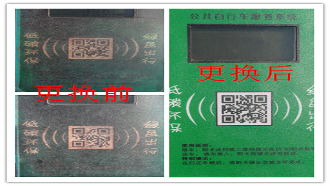 公共自行車系統(tǒng)建成后,由于日曬雨淋導(dǎo)致部分車樁二維碼變得模糊不清,出現(xiàn)了用戶手機(jī)掃碼無(wú)反應(yīng),無(wú)法借車的情況。針對(duì)這一現(xiàn)象,市公交公司公共自行車運(yùn)營(yíng)中心工作人員積極聯(lián)系生產(chǎn)廠家,重新制作二維碼500張,并及時(shí)組織工作人員走上街頭對(duì)無(wú)法識(shí)別的車樁二維碼進(jìn)行了集中更新,截至目前已全部更新完畢,為市民出行提供了方便。
