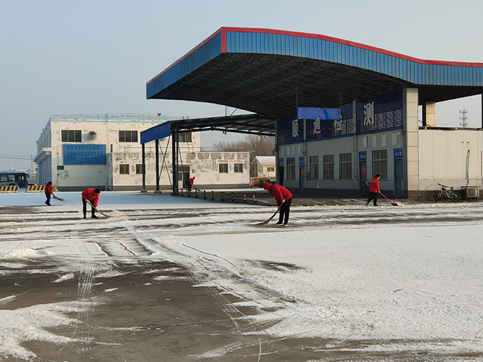 經(jīng)過一個多小時的奮戰(zhàn),大家將站內(nèi)的主要出入口和道路的積雪全部清掃干凈。雖然大家弄濕了鞋子、弄臟了衣服,但是看著為客戶開辟的這條暢通之路,每個人臉上都洋溢著自豪的笑容。