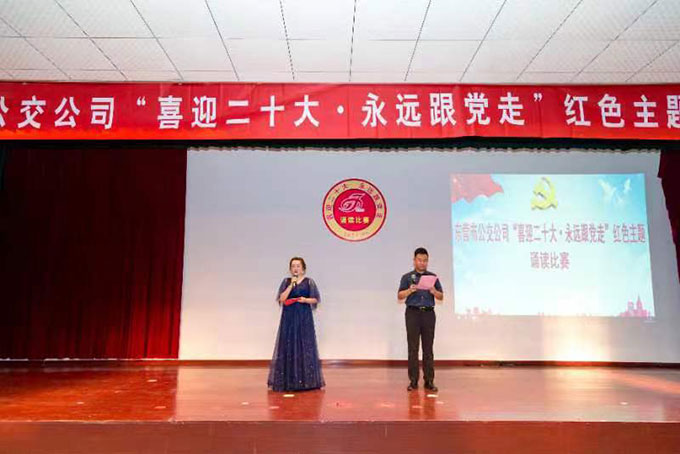 為迎接黨的二十大勝利召開,更加深入學習貫徹省十二次黨代會精神,集中展現(xiàn)新時期公交干部職工在各自工作崗位上的新作為、新?lián)?、新姿態(tài),引導公司干部職工更加堅定理想信念,在“七一”建黨節(jié)來臨之際,市公交公司于6月30日上午組織開展了“喜迎二十大·永遠跟黨走”紅色主題誦讀比賽活動。市交通運輸局直屬機關黨委專職副書記趙秀來同志到場指導,市公交公司黨委委員、工會主席蔣積堯,黨委委員、辦公室主任劉玉忠等出席活動。