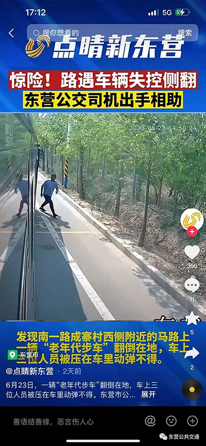 6月28日,側(cè)翻的老年代步車傷者的家屬一行來到東營市公交公司汽車四隊,他們帶著錦旗和防暑物資來感謝在危急時刻救出被困人員的東營公交駕駛員孫建強(qiáng)師傅。
