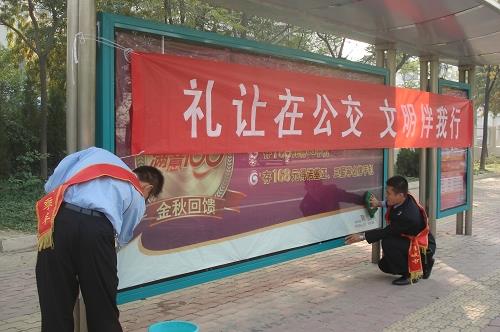 10月16日上午,市公交公司積極響應(yīng)市文明辦開展的“從我做起,走向文明”志愿服務(wù)集中行動,組織公司及車隊后勤人員對城區(qū)410個公交站牌站棚進(jìn)行了全面清潔,對亂貼亂畫及小廣告進(jìn)行了徹底清理,并積極疏導(dǎo)乘客排隊上車,維護乘車秩序,用實際行動踐行了“從我做起,走向文明”的活動宗旨,得到了廣大市民的一致好評。