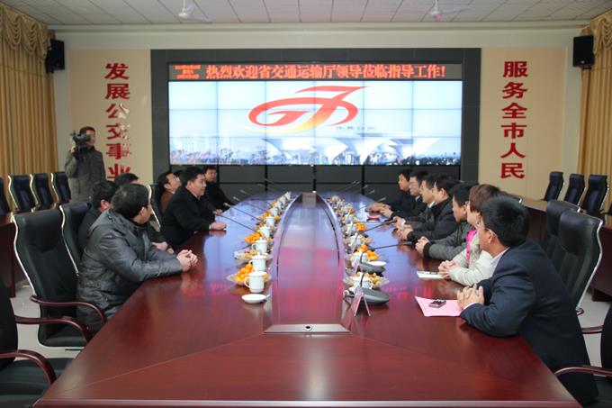 2月18日上午,省交通運(yùn)輸廳人事處副處長韓明一行,在市交通運(yùn)輸局黨委副書記鄭月成、工會主席王愛軍等領(lǐng)導(dǎo)的陪同下,到市公交公司智能調(diào)度指揮中心進(jìn)行了專項考核指導(dǎo)。